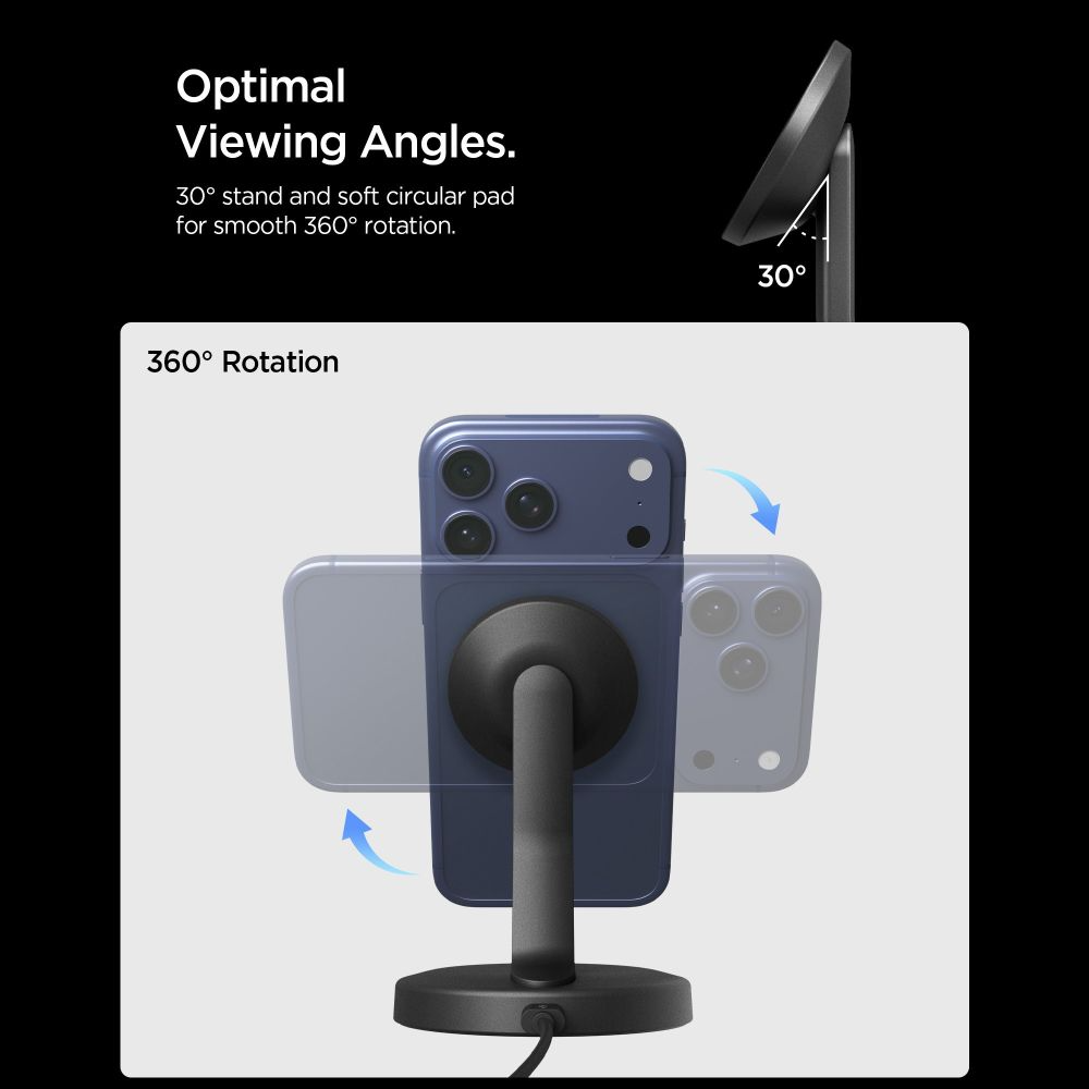 browsing social networks while the phone charges. The ergonomic tilt angle of 30 degrees offers comfortable viewing,