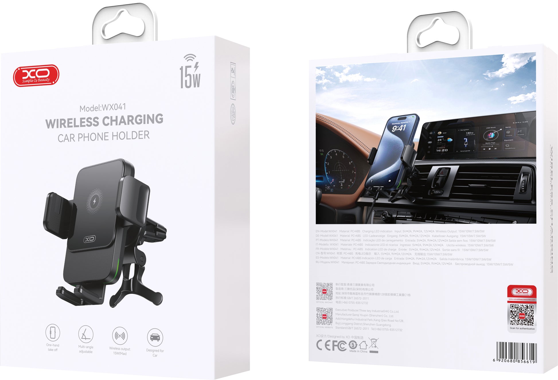XO WX41 is a magnetic car holder for the air vent, equipped with wireless charging function, designed to provide comfort and efficiency