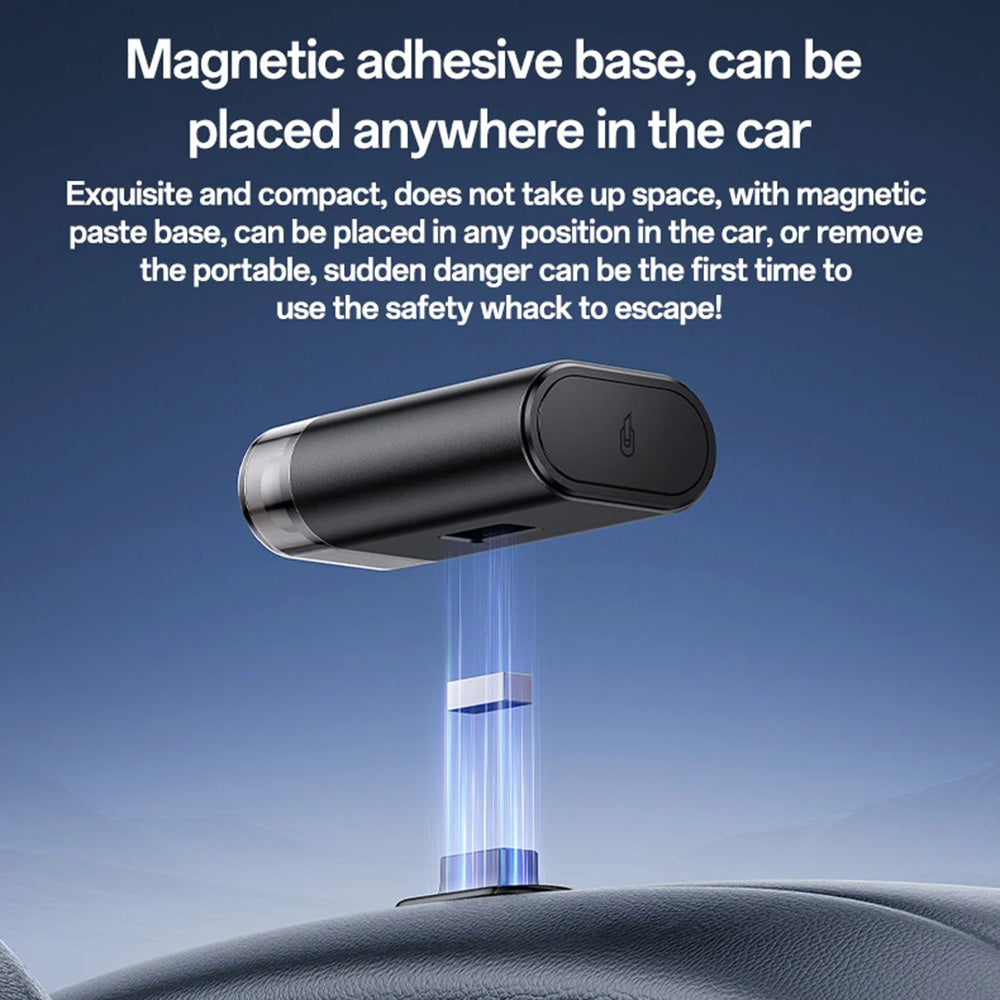 the stainless steel blade cuts safety belts, and the integrated magnet allows for visible and easy mounting in the car.