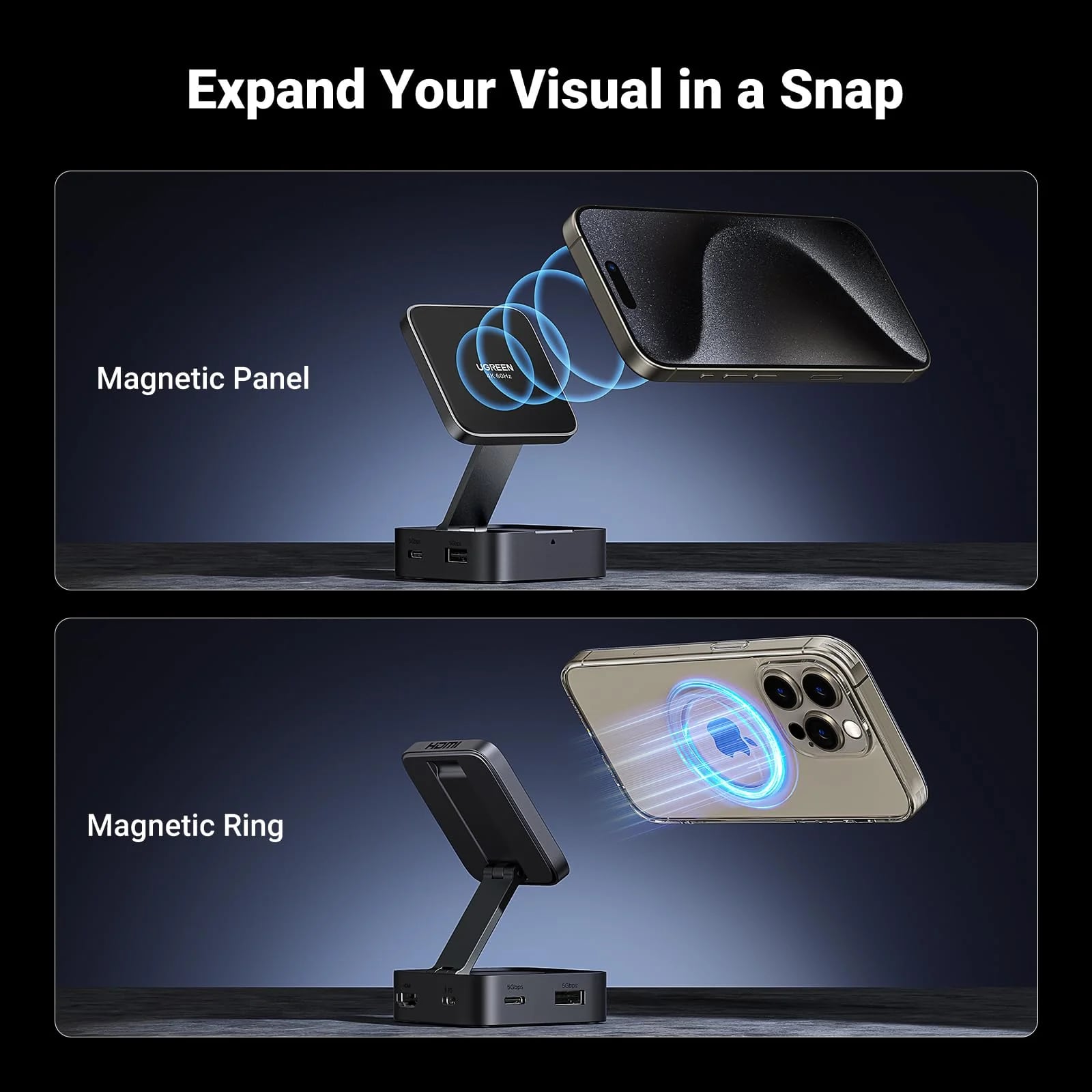 Opremljen z močnim 9N magnetnim sistemom in posvečenim magnetnim obročem, se hub trdno in varno pritrdi na združljive naprave,