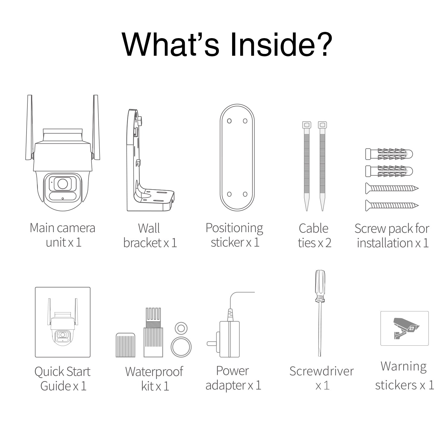 | Vsebina | Montažni pribor / Napajalni kabel / Kamera za nadzor / Polnilnik za omrežje |
