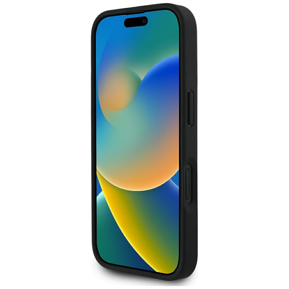 Ovitek MagSafe za Apple iPhone 16, Guess, Peony Grained Hot Stamp Triangle, Črna